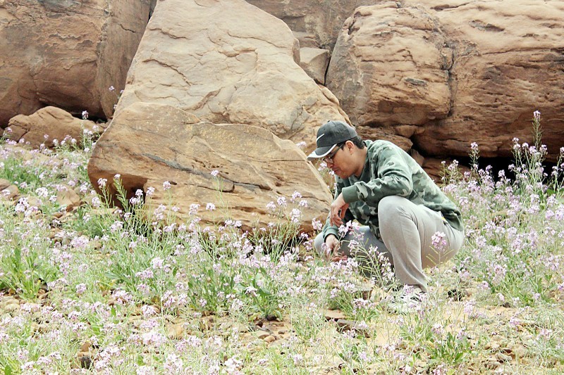 سليمان اللامي في إحدى المناطق الجبلية الربيعية في أشواق التبوكية.