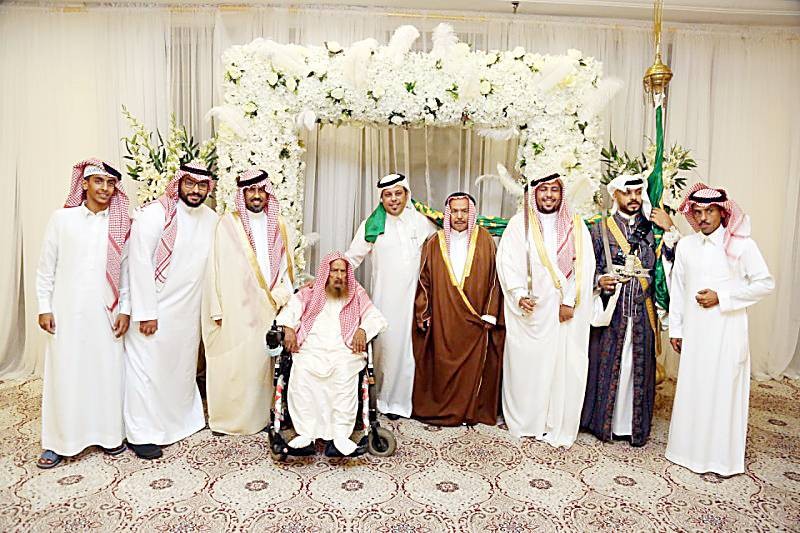 العريس مع والده وبعض الأقارب في الحفلة. (عكاظ)
