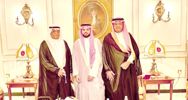 العريس يتوسط والده ووالد العروس. (عكاظ)