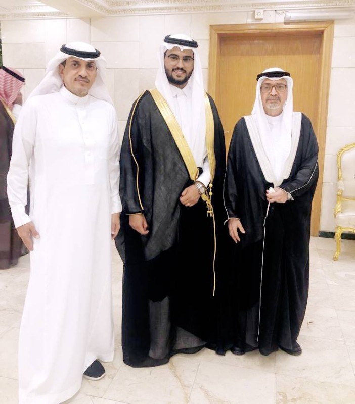 العريس مع والد العروس وعمها. (عكاظ)