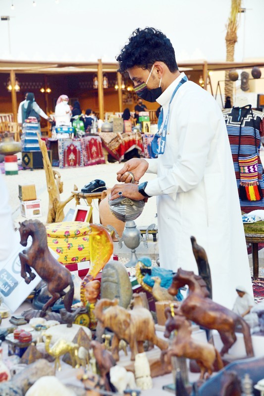 بائع يستعرض مقتنيات قديمة في قرية زمان بموسم الرياض.