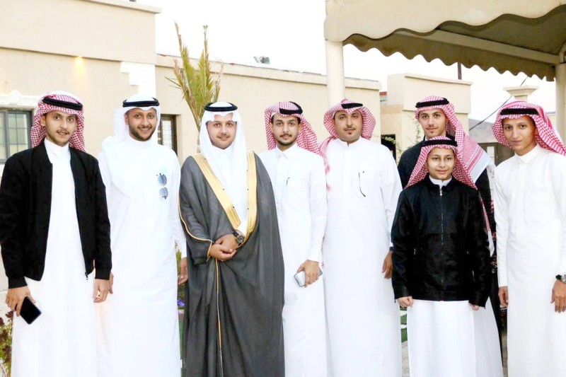 العريس مع بعض الأقارب. (عكاظ)
