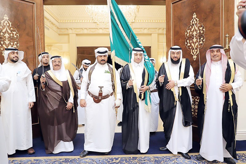 العريس مع أقاربه أثناء الزفة.(عكاظ)