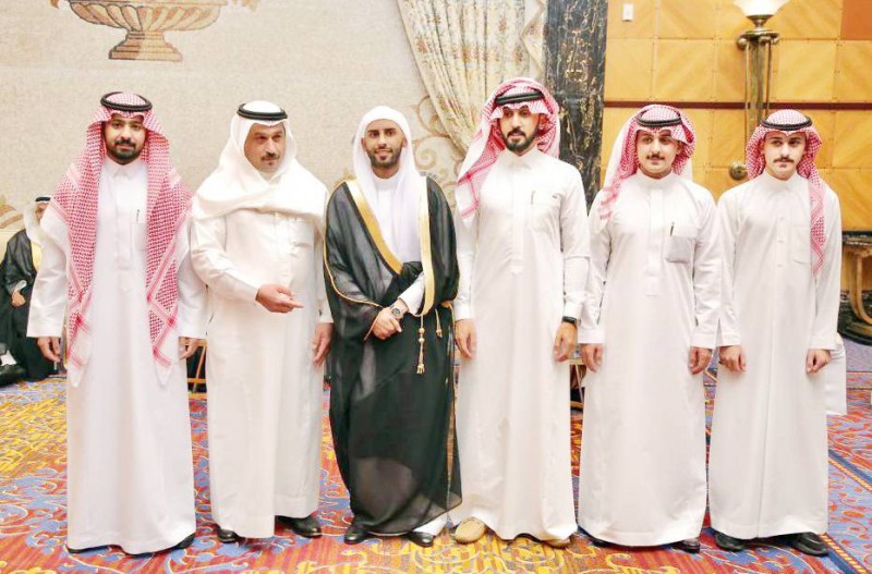 العريس مع بعض الأقارب. (عكاظ)