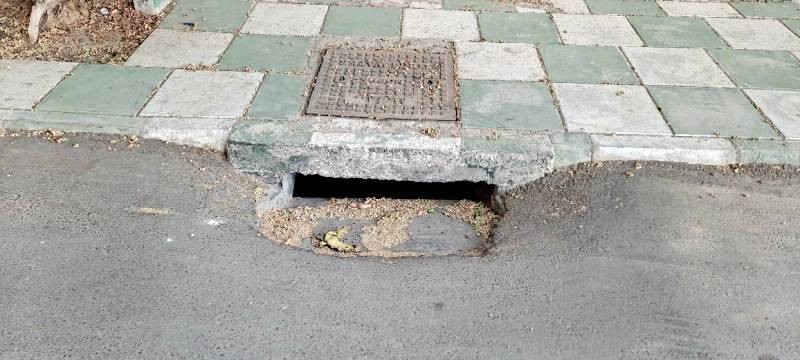 حفر ومصائد أضحت خطراً يهدد العابرين. الصورة التقطت أمس في حي الرحاب شارع تعز بجدة.