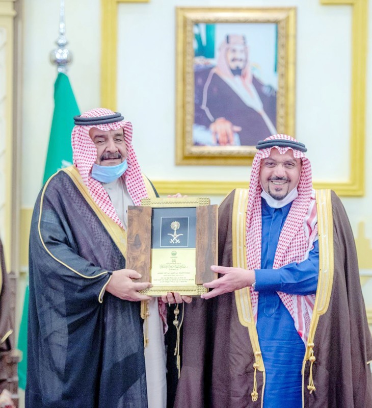 الأمير فيصل بن مشعل مكرماً السناني. (عكاظ)