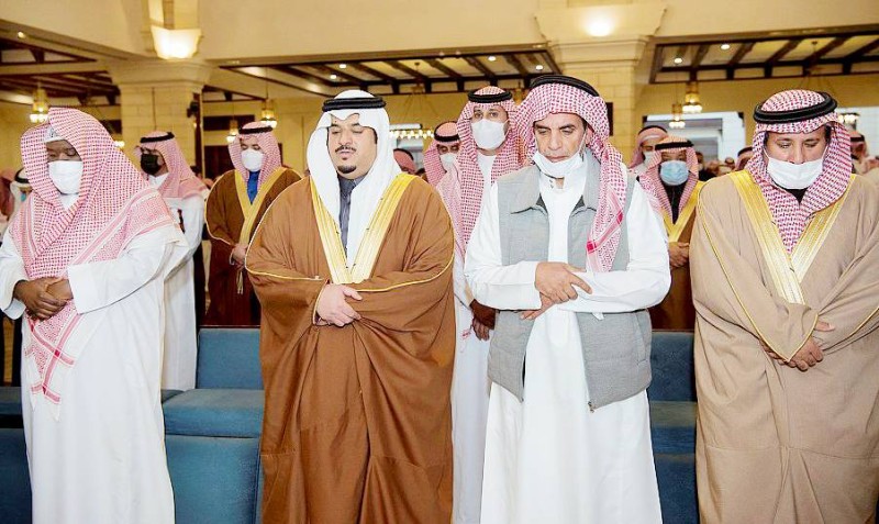 الأمير محمد بن عبدالرحمن مؤديا الصلاة على الفقيد. (واس)