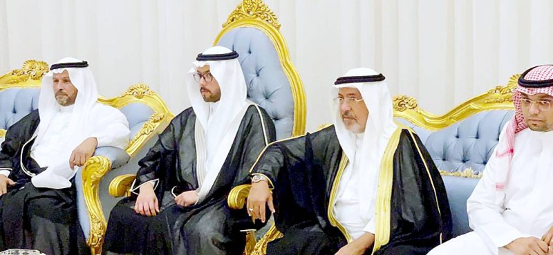 العريس بين أقاربه أثناء عقد القران. (عكاظ)