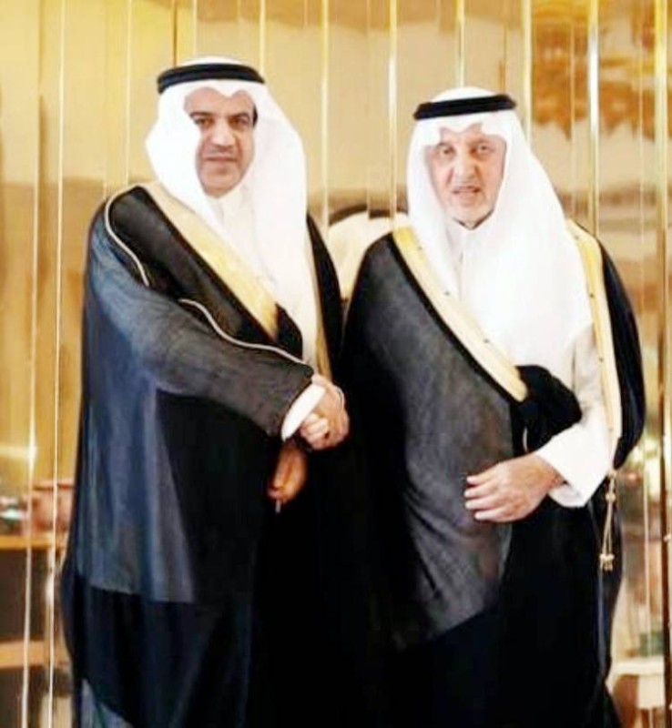 الأمير خالد الفيصل مكرِّماً المدير العام الزميل عبدالله الحسون. (عكاظ)