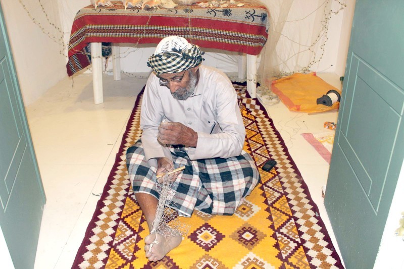 الحرفي أحمد محمد يمارس صناعة خيوط الصيد التي تستخدم خصيصا لصيد الأسماك في محافظة أملج. (تصوير: علي بدير)