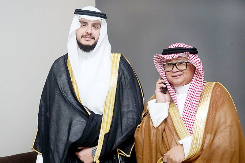 العريس مع والد العروس. (عكاظ)