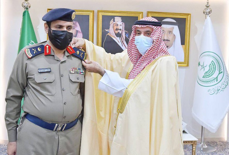 أمير نجران مقلدا الشهراني رتبته الجديدة. (واس)