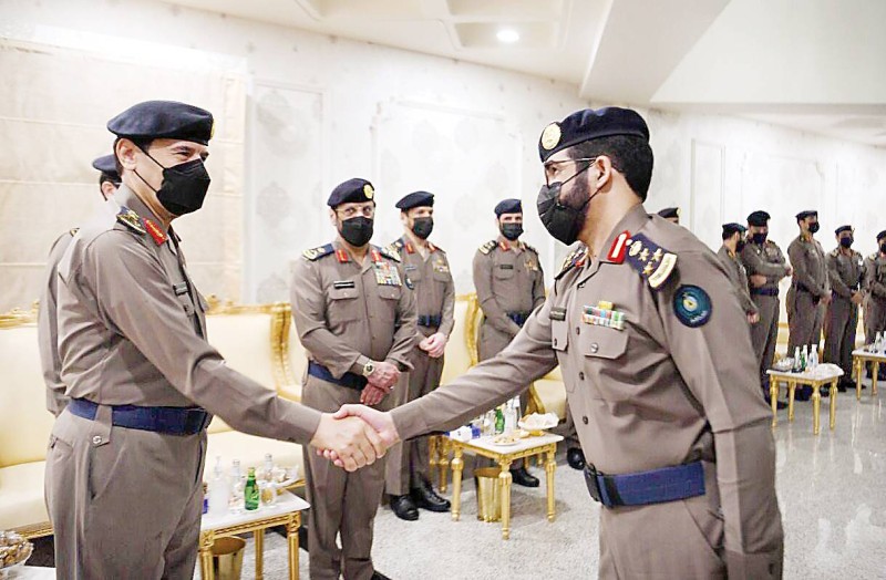 الفريق العمرو مقدما التهاني لمنسوبي الدفاع المدني.(عكاظ)