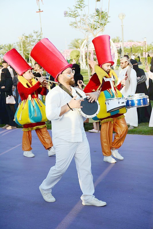 فرق استعراضية خلال مشاركتها في مهرجان الورد في الطائف.