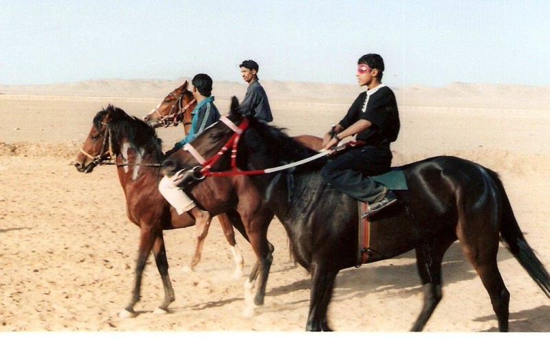 شباب يمارسون رياضة الفروسية في صحراء المنجور بمحافظة الوجه. (تصوير: علي بدير)