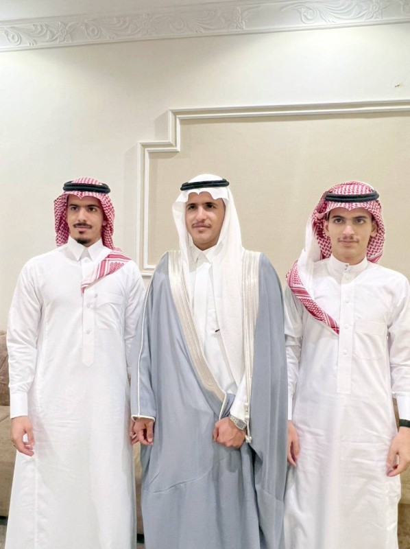 العريس يتوسط صديقيه. (عكاظ)