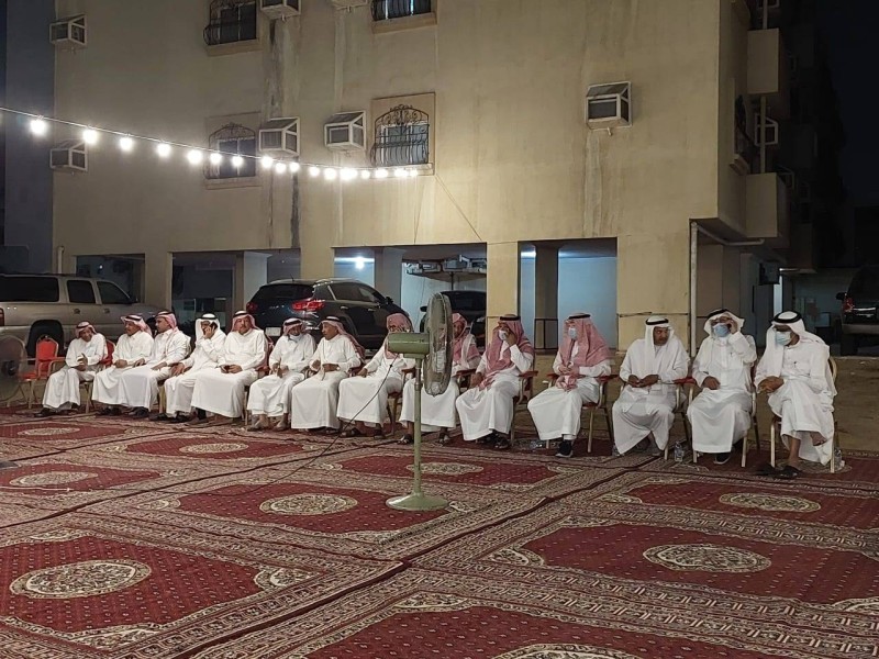 ذوو الفقيد في مجلس العزاء.(عكاظ)