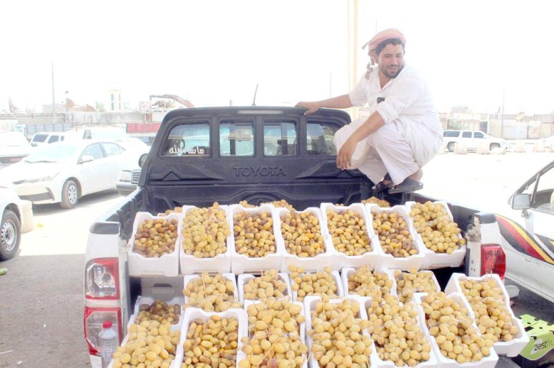 بائع يستعرض البلح والرطب في سوق السبت في تبوك. (تصوير: علي بدير)