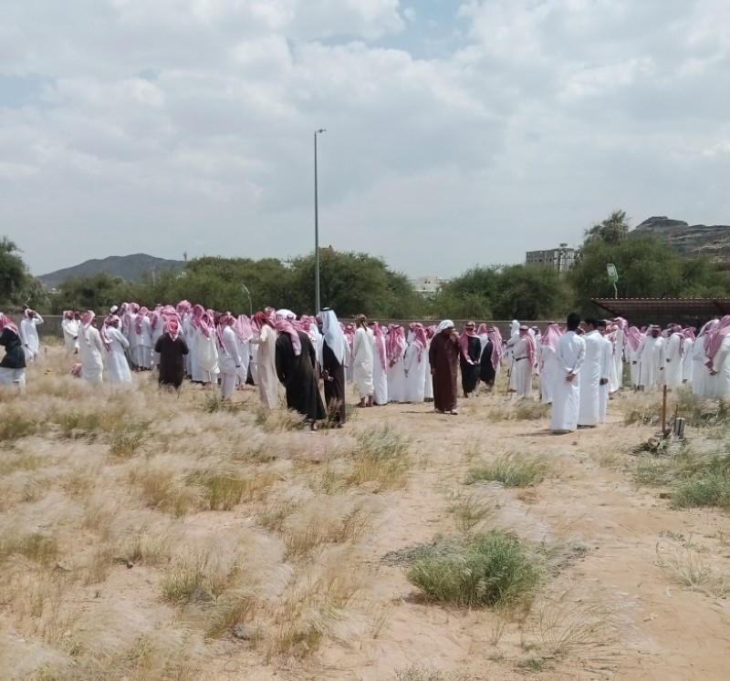 جموع من المشيعين خلال دفن الفقيدتين آل مقرح بمقبرة آل مدير رفيدة.