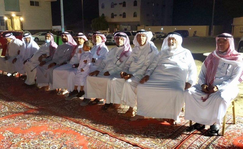 ذوو الفقيد في مجلس العزاء.(عكاظ)