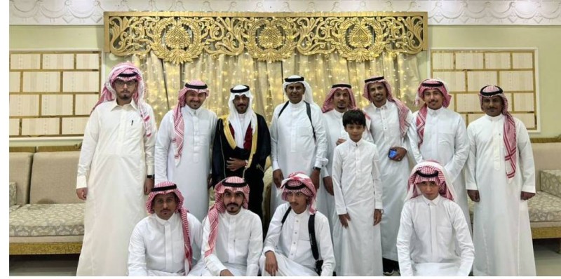 العريس محاطا بأقاربه. (عكاظ)
