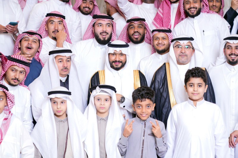 العريس محاطاً بأقاربه. (عكاظ)