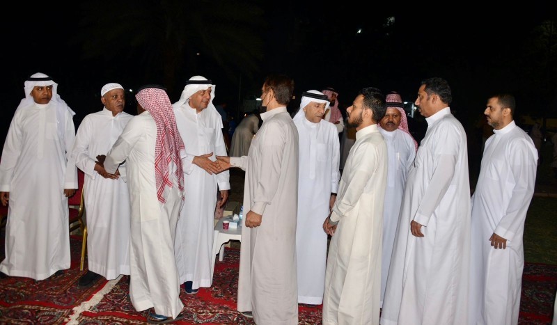 ذوو الفقيدة يستقبلون المعزين أمس. (تصوير: عبدالسلام السلمي)