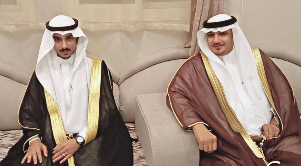 العريس مع أحد أقاربه. (عكاظ)