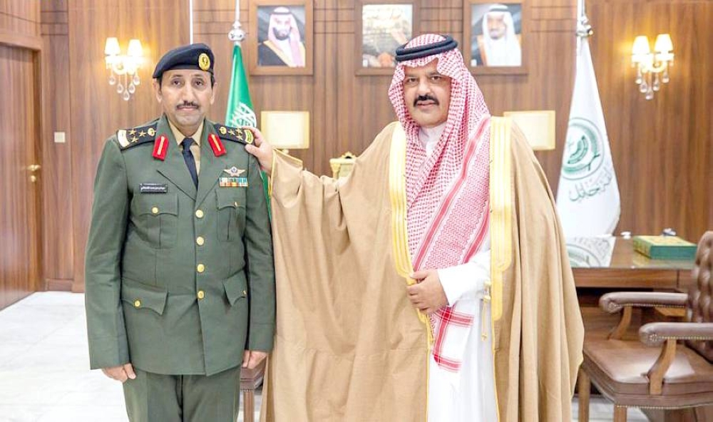 أمير حائل مقلداً القحطاني رتبته الجديدة. (واس)
