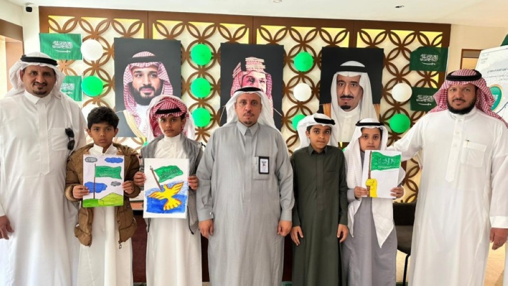 في غضون ذلك، صاحب هذه المناسبة تدشين المعرض الفني المصاحب ليوم العلم السعودي بتنظيم من إدارة الاشراف التربوي (بنين) قسم النشاط الفني، حيث ضم في جنباته لوحات فنية أبدع في رسمها الطلبة في عددٍ من الفنون، بالإضافة إلى استعراض الأعمال الفنية ودمجها مع اللغة العربية في لوحات عديدة تحكي عن هوية المملكة العربية السعودية وتاريخها وأيضا تاريخ تطور العلم حتى الوقت الحالي.