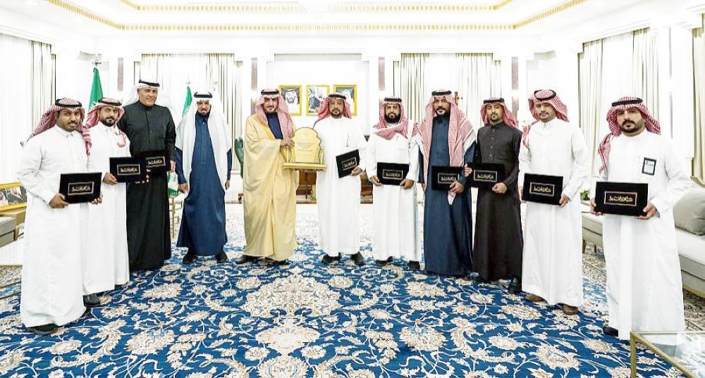 الأمير فيصل بن نواف يتوسط المكرمين. (واس)