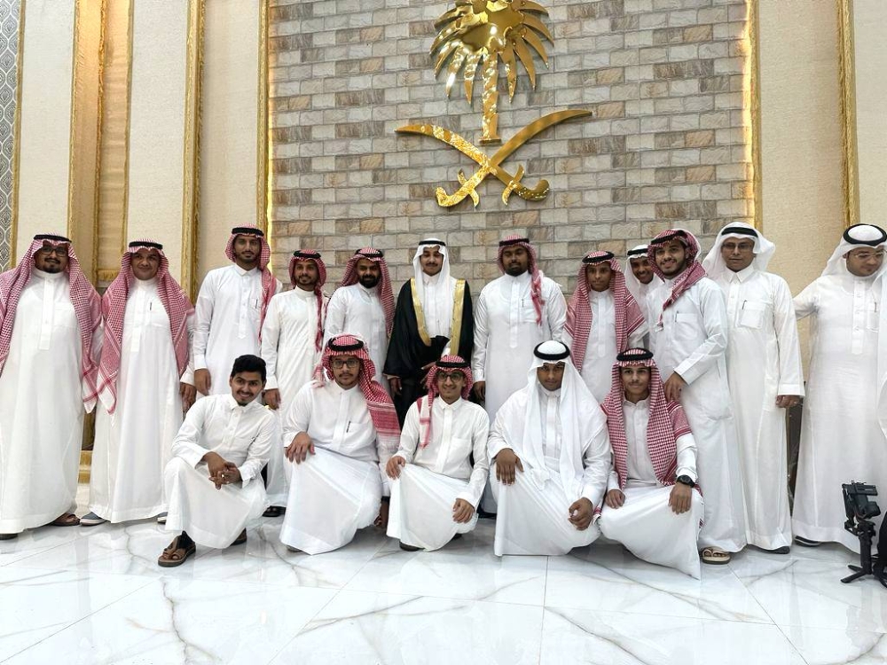 العريس محاطا بأقاربه في الحفل. (عكاظ)