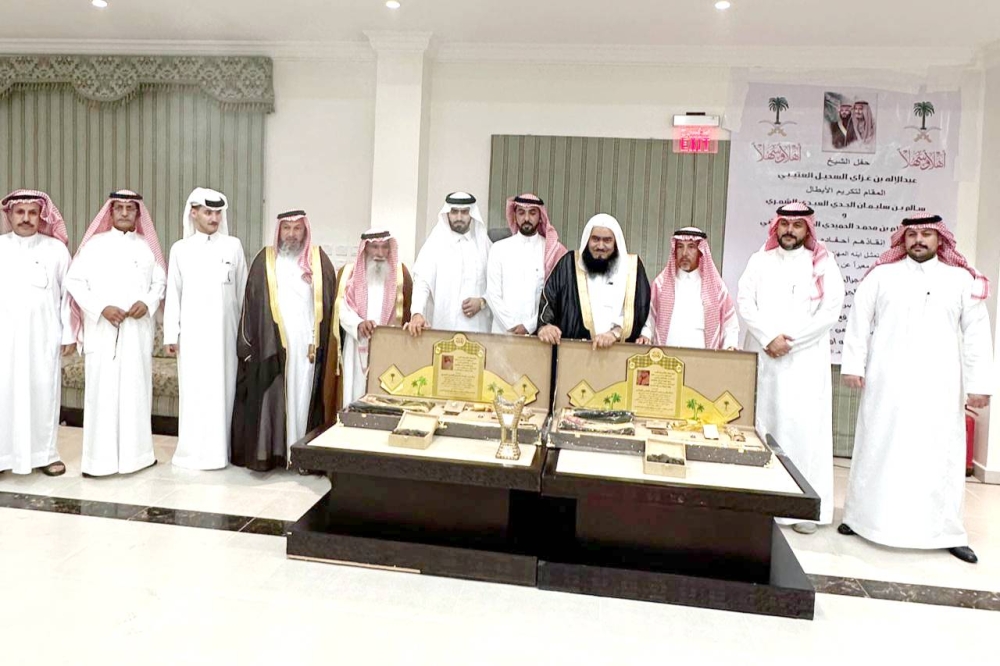 كرم عبدالإله العتيبي، أمس (السبت)، في أحد المخيمات بالجبيل الشابين سالم الشمري وعبدالسلام الزهراني، نظير عملهما البطولي في إنقاذ أحفاده من الغرق بشاطئ مردومة بالجبيل الصناعية أخيراً.
