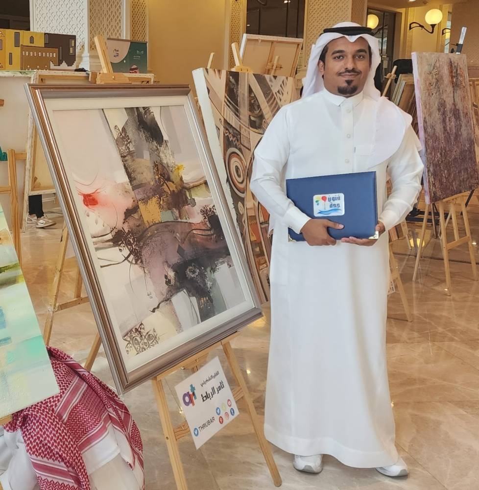 خطف الفنان التشكيلي ثامر الرباط، الأنظار في مسابقة «فنون جدة» التي أقيمت أخيراً بحضور مدير التعليم بمحافظة جدة الدكتور نايف الزارع وعدد من قيادات التعليم ومديري الدوائر الحكومية.