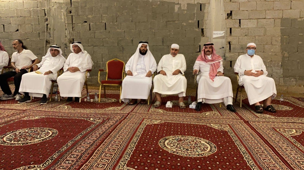 ذوو الفقيدة في مجلس العزاء أمس. (عكاظ)