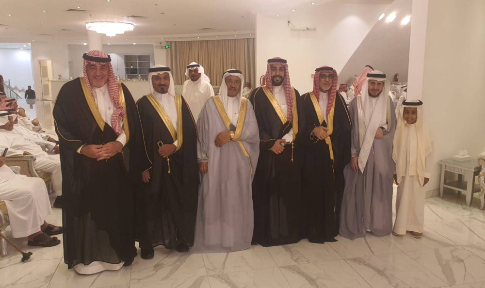 العريس بين والده ووالد العروس وبعض الأقارب. (عكاظ)