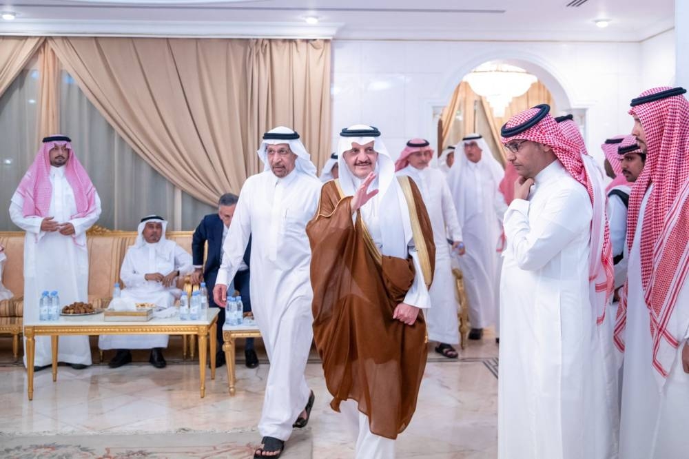 قدم أمير المنطقة الشرقية الأمير سعود بن نايف بن عبدالعزيز اليوم (السبت)، التعازي لوزير الاستثمار المهندس خالد بن عبدالعزيز الفالح في وفاة والده (رحمه الله) وذلك في منزله بالظهران، سائلاً الله العلي القدير أن يتغمد الفقيد بواسع رحمته ويسكنه فسيح جناته.