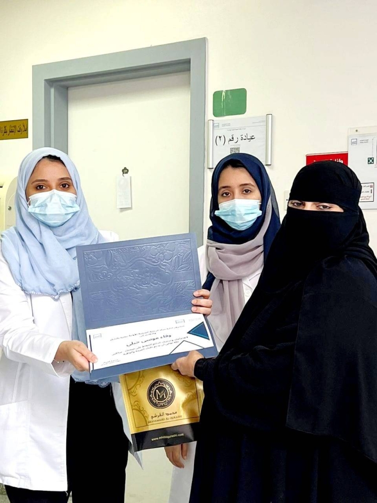 وبعد ذلك قام منسق الحالة منصور الشريف بتكريم أصدقاء السكر الذين حافظوا على نمط صحي مناسب وانخفض معدل السكر التراكمي والاستغناء عن بعض الأدوية باستشارة الطبيب، وذلك تشجيعاً لهم على الاستمرار باتباع حياة صحية مناسبة.