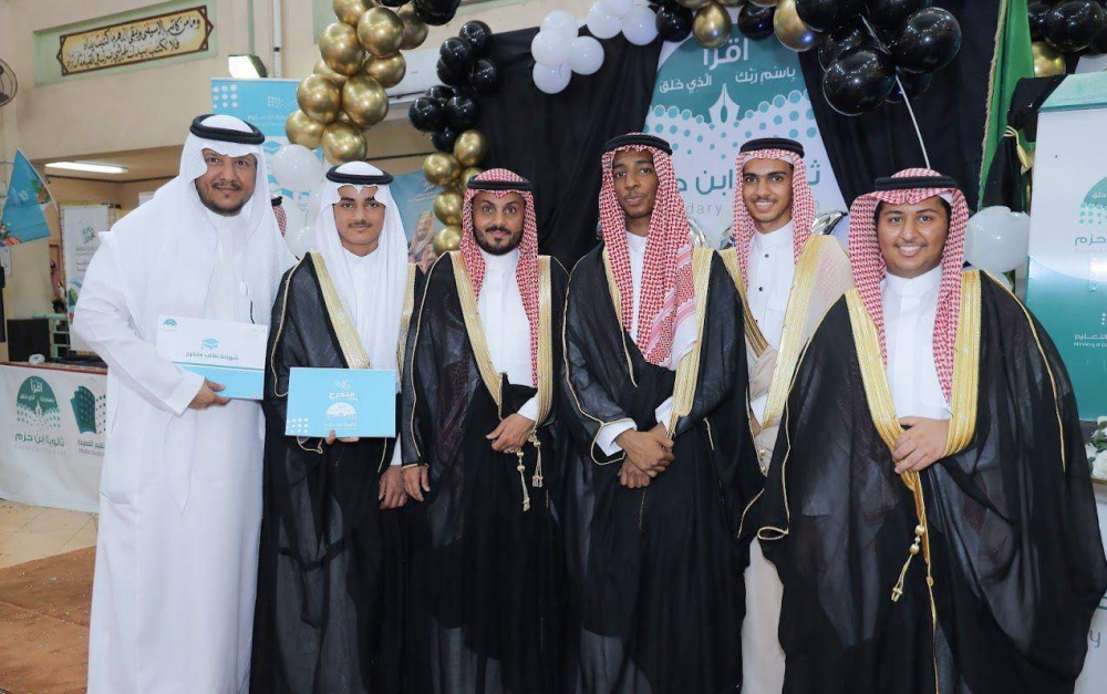 احتفلت ثانوية ابن حزم بجدة بطلابها الخريجين للعام الدراسي 1445. وتخلل الحفل مسيرة للطلاب الخريجين.