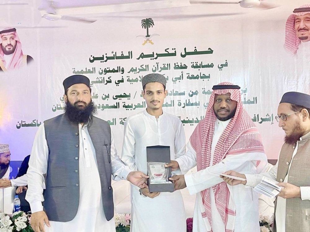 اختتمت وزارة الشؤون الإسلامية والدعوة والإرشاد؛ ممثلة بالملحقية الدينية بسفارة المملكة في جمهورية باكستان الإسلامية، أمس (الثلاثاء)، مسابقة حفظ القرآن الكريم ومسابقات حفظ المتون في رحاب جامعة أبي بكر الإسلامية بمدينة كراتشي بجمهورية باكستان الإسلامية.