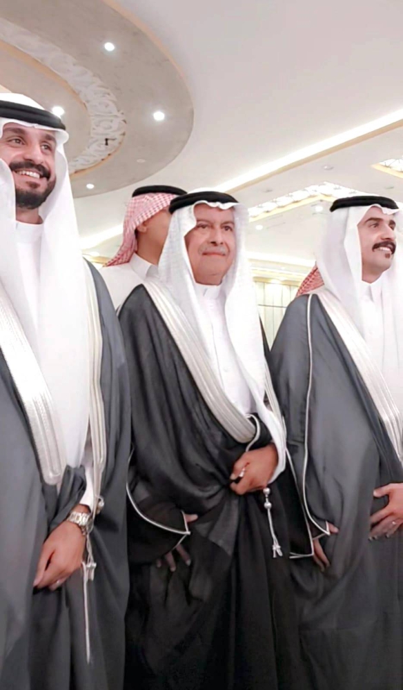 العريسان مع والدهما. (عكاظ)