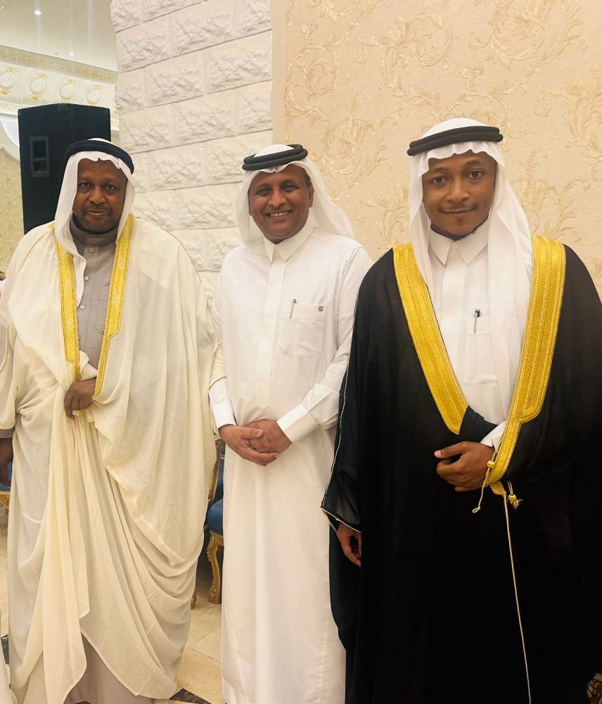 العريس مع والده وأحد الأقارب. (عكاظ)