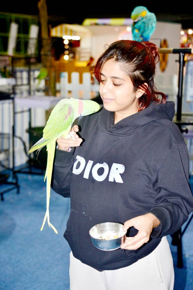 شابة تمارس هواية تربية الطيور في أحد المحلات بجدة. (تصوير: عبدالسلام السلمي)