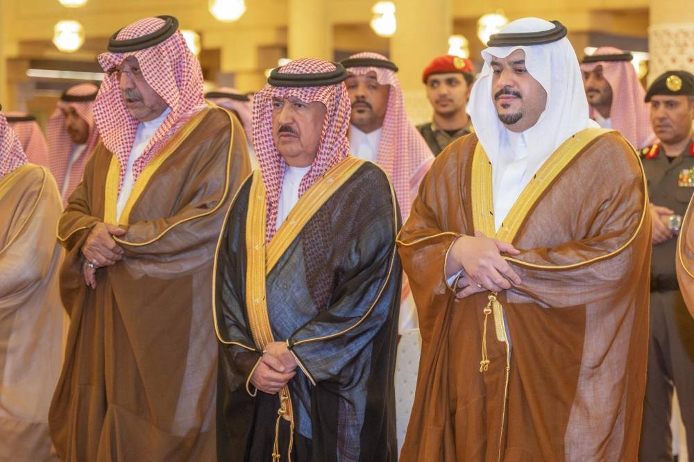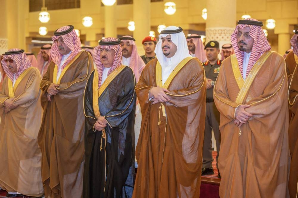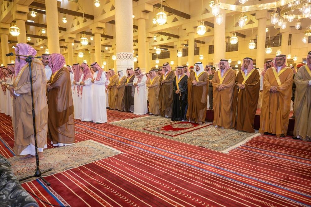 Joining him in the prayer were Prince Sultan bin Saud bin Abdullah bin Saud, Prince Muteb bin Thunayan bin Mohammed, the advisor to the Custodian of the Two Holy Mosques, Prince Faisal bin Khalid bin Abdulaziz, Prince Faisal bin Abdullah bin Mohammed, Prince Khalid bin Saud Al-Kabir, Prince Saud bin Abdullah bin Thunayan, the Commander of the Royal Saudi Air Force, Lieutenant General Turki bin Bandar bin Abdulaziz, Prince Dr. Saud bin Salman bin Mohammed, Prince Turki bin Saud bin Mohammed, Prince Ahmed bin Abdullah bin Abdulrahman, Prince Saud bin Turki bin Saud Al-Kabir, Prince Mohammed bin Saad bin Khalid, Prince Bandar bin Saad bin Khalid, the advisor in the Royal Court, Prince Faisal bin Turki bin Abdulaziz, Prince Bandar Fahd bin Khalid bin Abdullah bin Mohammed, Prince Mohammed bin Faisal bin Bandar bin Abdulaziz, Prince Faisal Abdullah bin Mishari, the Minister of State and Member of the Council of Ministers, Prince Turki bin Mohammed bin Fahd bin Abdulaziz, Prince Mohammed bin Turki bin Saud Al-Kabir, Prince Mishal bin Muteb bin Thunayan, the Governor of Al-Ahsa, Prince Saud bin Talal bin Badr, Prince Fahd bin Khalid bin Sultan bin Abdulaziz, Prince Abdulaziz bin Turki bin Saud Al-Kabir, and Prince Saud Faisal bin Turki bin Saud Al-Kabir.