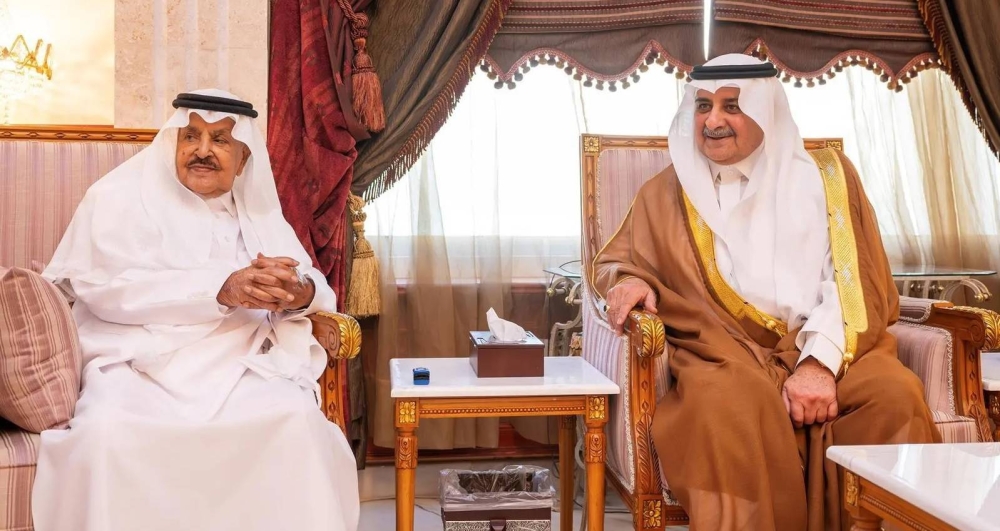 The Prince of Tabuk, Prince Fahd bin Sultan bin Abdulaziz, visited Sheikh Ahmed bin Abdulrahman Al-Kharisi today at his home in the city of Tabuk to check on his health.