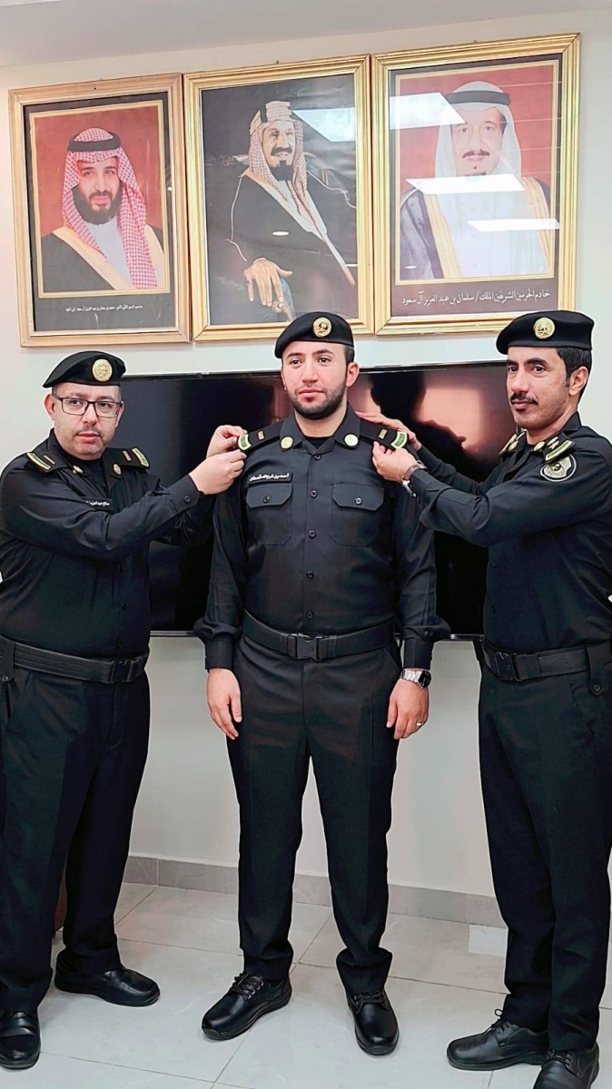 The Deputy Director of Security Patrols in the Al-Baha region, Major Awad bin Masoud Al-Ghamdi, awarded the new rank to Chief Warrant Officer Ahmed bin Gharam Allah Qahtan. Abu Mohammed received congratulations from colleagues, family, and friends.