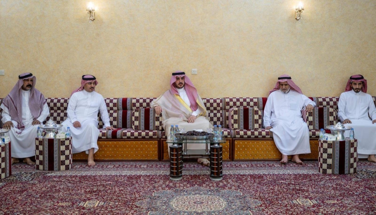 The Emir of Al-Jouf, Prince Faisal bin Nawaf bin Abdulaziz, offered his condolences and sympathy to the Director General of the Legal Affairs Department of the Emirate of the region, Abdullah bin Hithal Al-Sarhani, on the death of his father (may God have mercy on him).