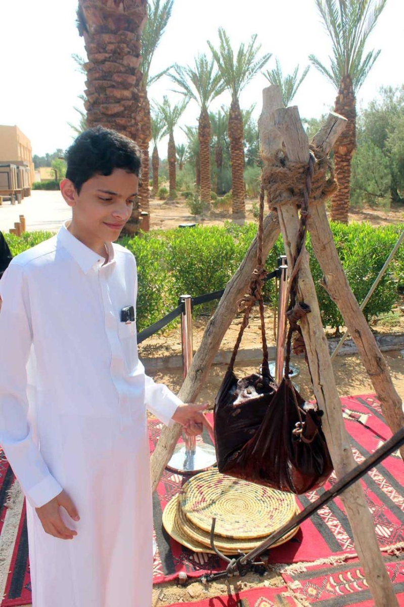 Abdullah Al-Anzi showcases the water troughs that were used in the past to cool and preserve water at the Heritage Corner exhibition held annually in Al-Ula Governorate. (Photo: Ali Bdeir)