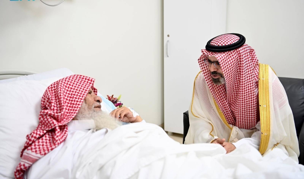 The Prince of Jazan Region, Prince Mohammed bin Abdulaziz, and his deputy, Prince Nasser bin Mohammed bin Abdullah bin Jiluwi, visited today (Friday) the former Chief of the Court of Appeal, Sheikh Ali bin Shayban Al-Amri, at Jazan General Hospital, after he suffered a health setback.