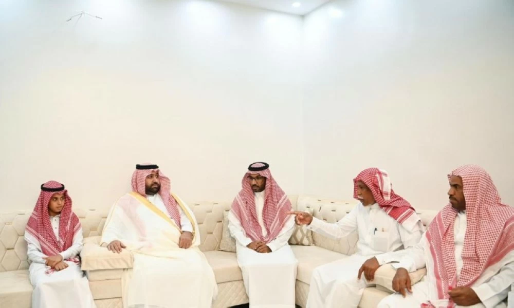 The Emir of Jazan Region, Prince Mohammed bin Abdulaziz bin Mohammed bin Abdulaziz, offered his condolences and sympathy to the family of First Corporal Ahmed Al-Muhanshi, a member of the Emirate Security Department, during his visit to their home in the Governorate of Ahad Al-Masarihah.